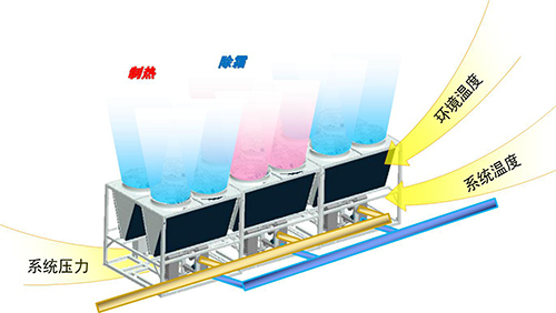 除霜時(shí)制熱不停機(jī):YCAE-G模塊組合時(shí),集控器會(huì)自動(dòng)均衡分配各模塊的除霜時(shí)間,避免組合模塊同時(shí)進(jìn)入除霜運(yùn)轉(zhuǎn);無需除霜的模塊可以保證系統(tǒng)繼續(xù)運(yùn)行,保證制熱不停機(jī)。